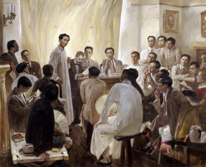 生动描绘了1920年11月,毛泽东、何叔衡、蔡和森等十二人共产主义先进分子在长沙秘密活动,在新民学会里热烈讨论的场面。 |