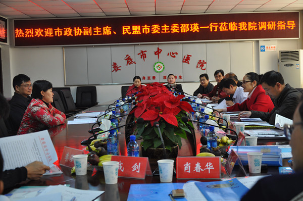 12月11日,娄底市政协副主席、民盟娄底市委主委邵瑛率盟娄底市委委员到娄底市中心医院调研,受到娄底市政协副主席、民盟娄底市委副主委、娄底市中心医院院长肖扬,娄底市中心医院党委书记李劲松等的热烈欢迎。