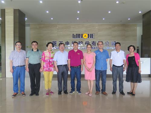 刘继清(左4)、邵瑛(右4)一行与菱王电梯公司总经理(中)谢建合影