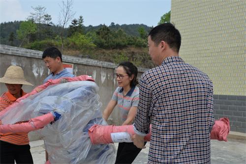 之后,邵瑛一行顾不上休息,直奔毛坪村小学,大伙协助村民,把健身器材卸下来。这套健身器材也是邵瑛副主席亲自协调市文体广新局支持给毛坪村的。在简单的捐赠仪式上,邵瑛指出,习总书记提出没有全民健康,就没有全面小康。孩子是祖国的未来,孩子的健康关乎祖国的未来,所以,我们选择把毛坪村第一套健身器材安放在学校,希望孩子们加强锻炼、健康成长。