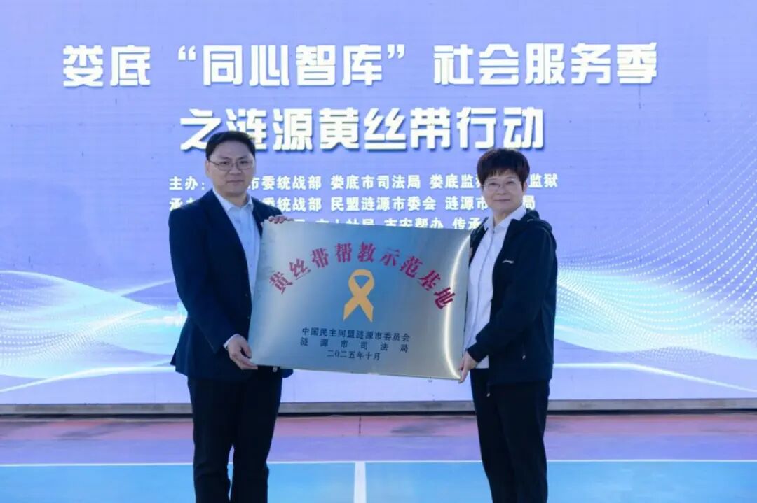 活动现场民盟涟源市委会与涟源市司法局联合向基地进行“黄丝带帮教示范基地”授牌,涟源民盟志愿者团队与基地签订了志愿帮教协议。在机制建设上积极创新并建立了长效帮扶机制。